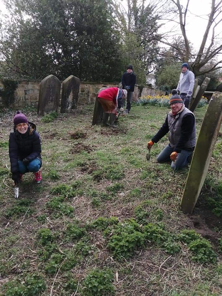 March 2020: Ivy clearing around graves in All Saints Churchyard